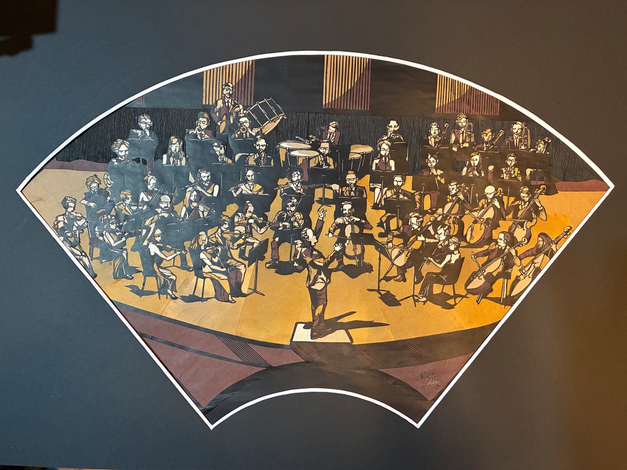 黒く残すところと和紙で色をつけるところの配色にかなりこだわってます。ステージ上奥のカーテンの表現もすべて1枚の和紙で表現しています。